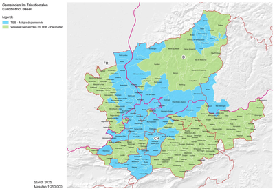 - Les cantons de Bâle-Ville et de Bâle-Campagne, le Planungsverband Fricktal Regio (Argovie), les arrondissements de Thierstein (Soleure) et Dorneck (Soleure), le Forum Schwarzbubenland du canton de Soleure