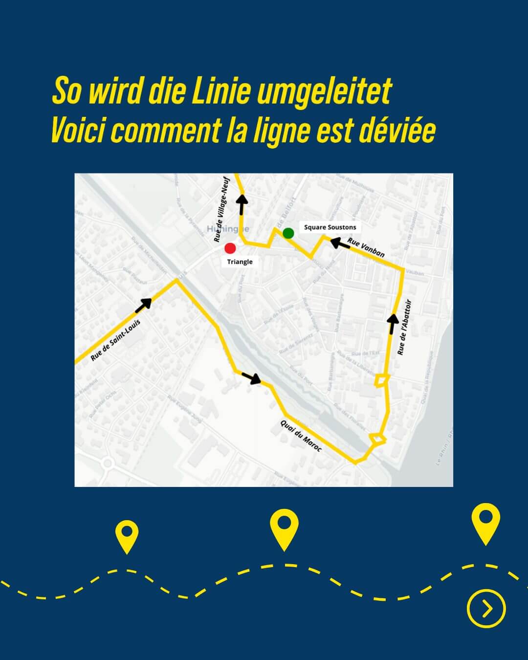 rue de Saint-Louis → quai du Maroc → rue de l'Abattoir → rue Vauban → rue de Village-Neuf.