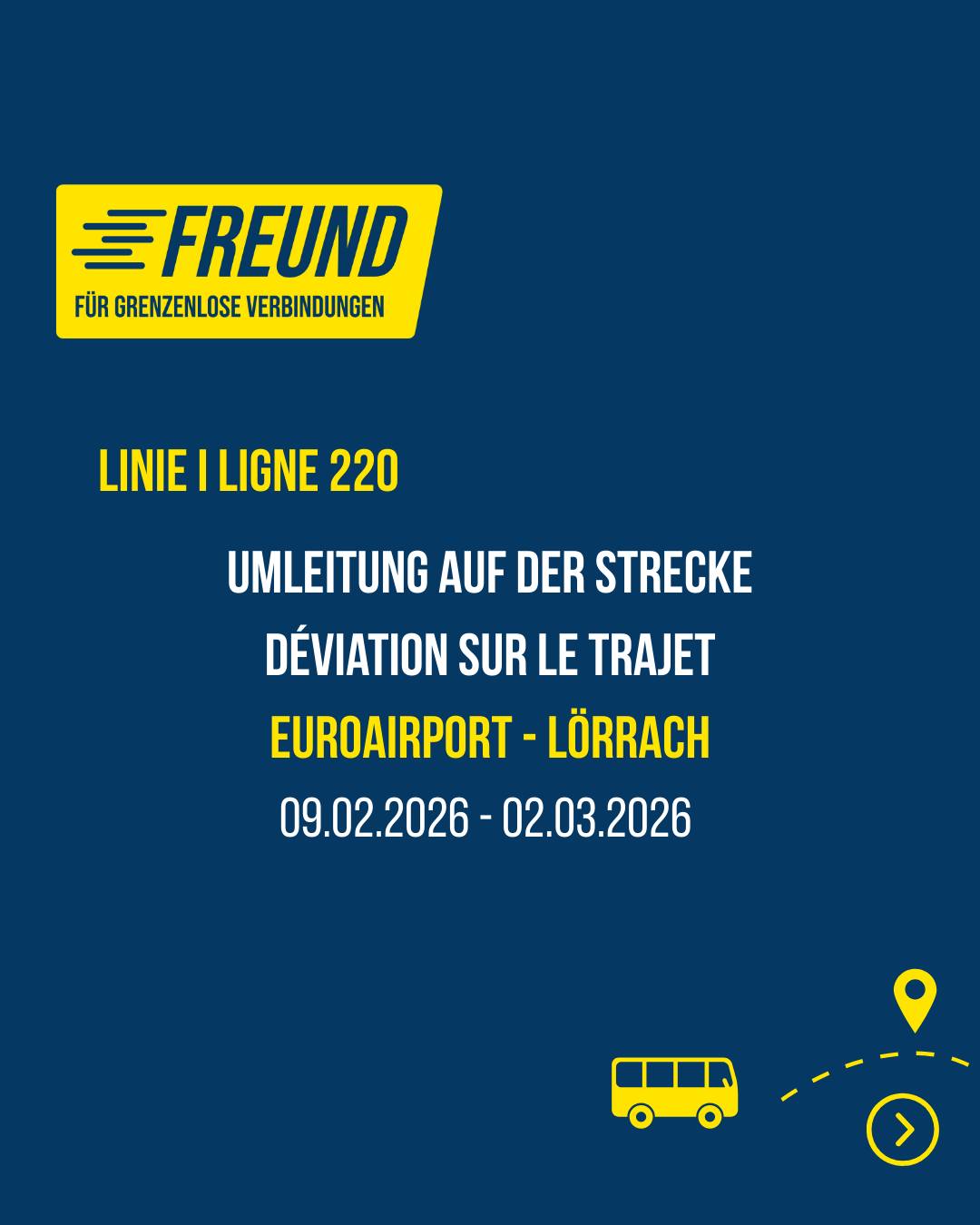 Bus Freund - Ligne 220 - Déviation sur le trajet 09.02.2026 - 02.03.2026
